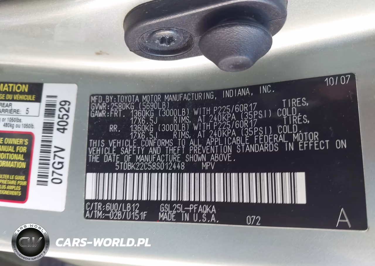 IAAI Nr: I-44797600 VIN: 5TDBK22C58S012448 Port: Elizabeth, NJ