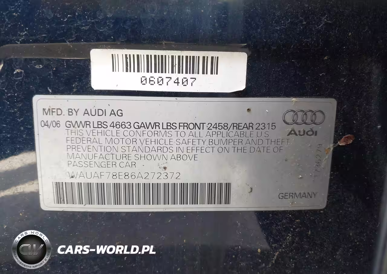 IAAI Nr: I-44797979 VIN: WAUAF78E86A272372 Port: Los Angeles, CA