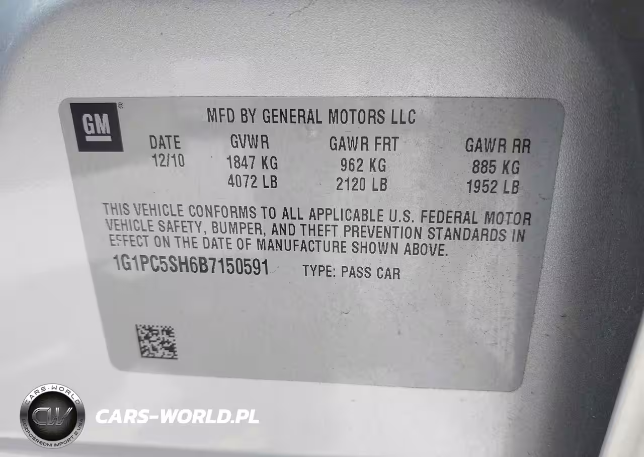 IAAI Nr: I-44797990 VIN: 1G1PC5SH6B7150591 Port: Savannah, GA