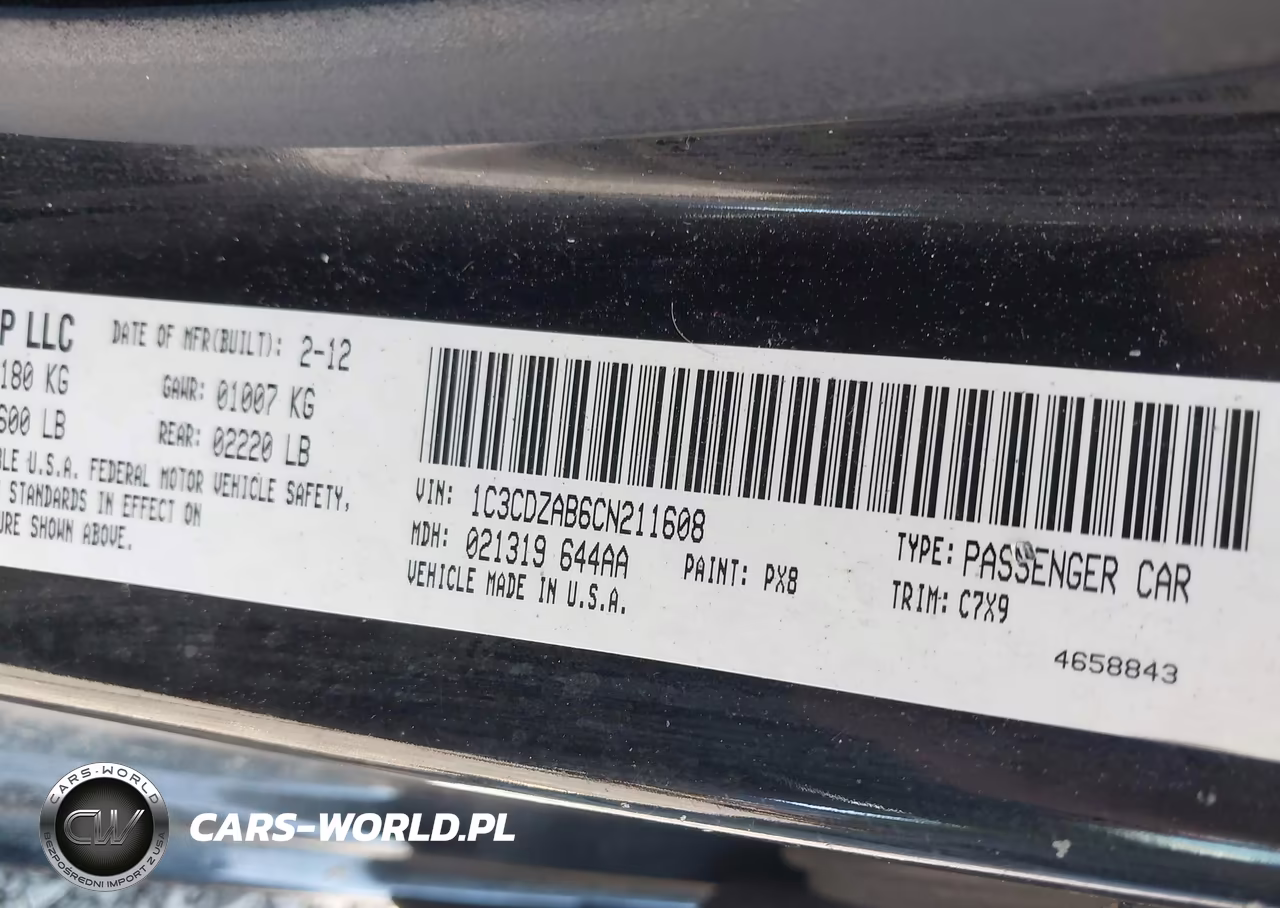 IAAI Nr: I-44798518 VIN: 1C3CDZAB6CN211608 Port: Savannah, GA