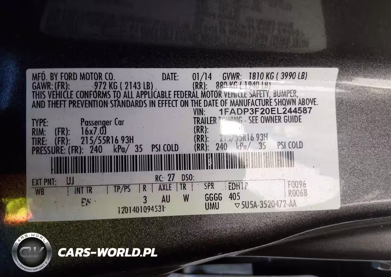 IAAI Nr: I-44798697 VIN: 1FADP3F20EL244587 Port: Elizabeth, NJ