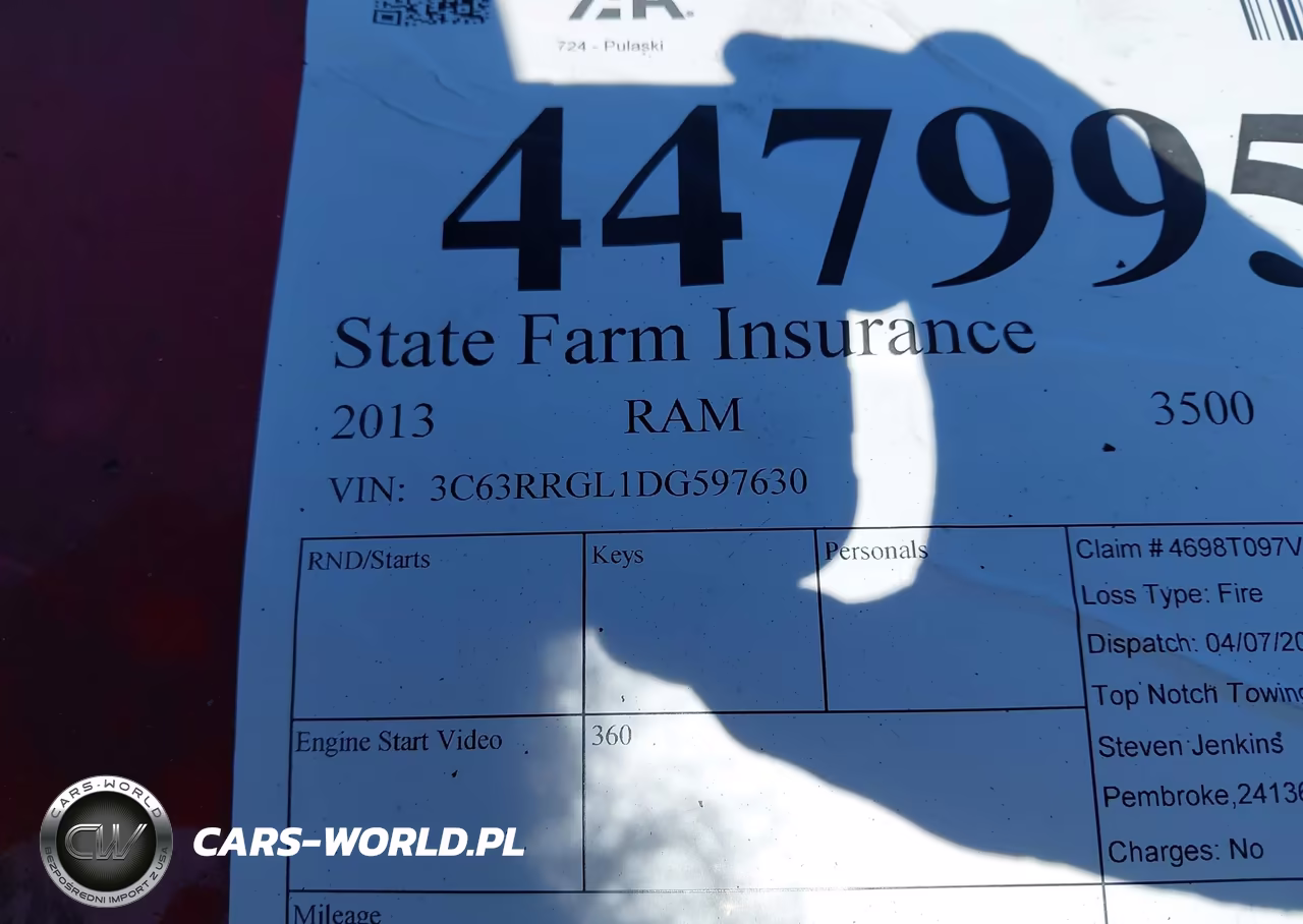 IAAI Nr: I-44799550 VIN: 3C63RRGL1DG597630 Port: Elizabeth, NJ