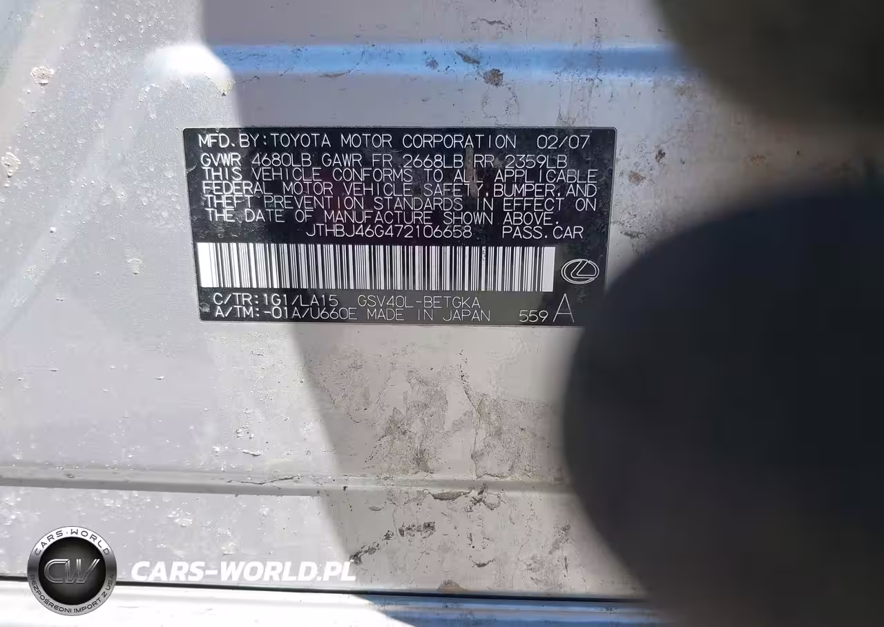 IAAI Nr: I-44799772 VIN: JTHBJ46G472106658 Port: Elizabeth, NJ