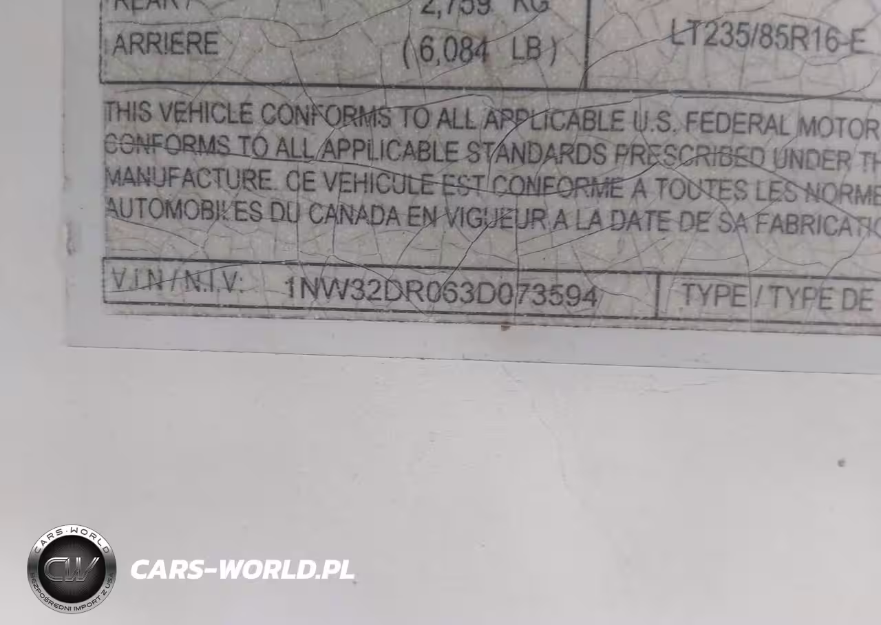 IAAI Nr: I-44800695 VIN: 1NW32DR063D073594 Port: Indianapolis, IN