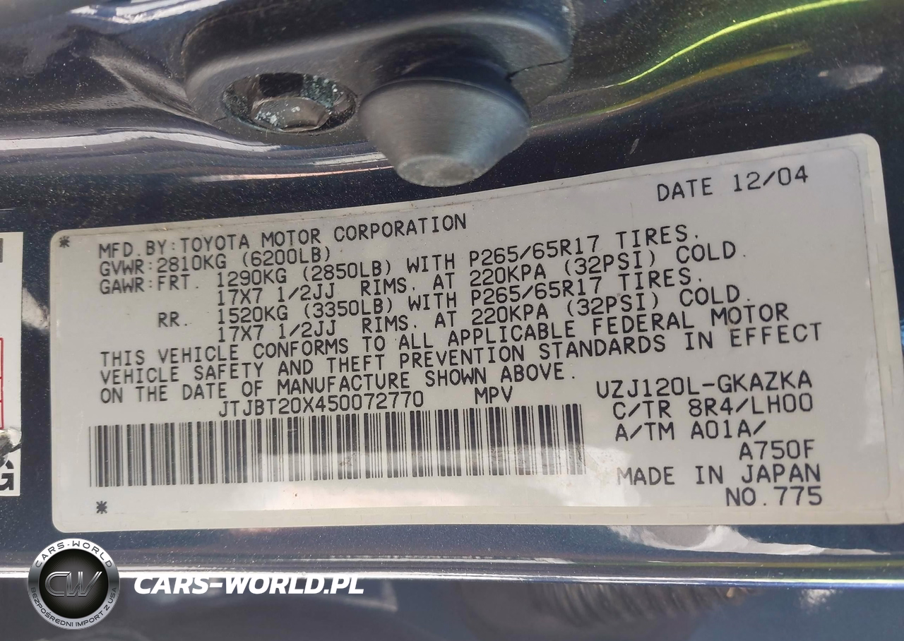 IAAI Nr: I-44800717 VIN: JTJBT20X450072770 Port: Savannah, GA