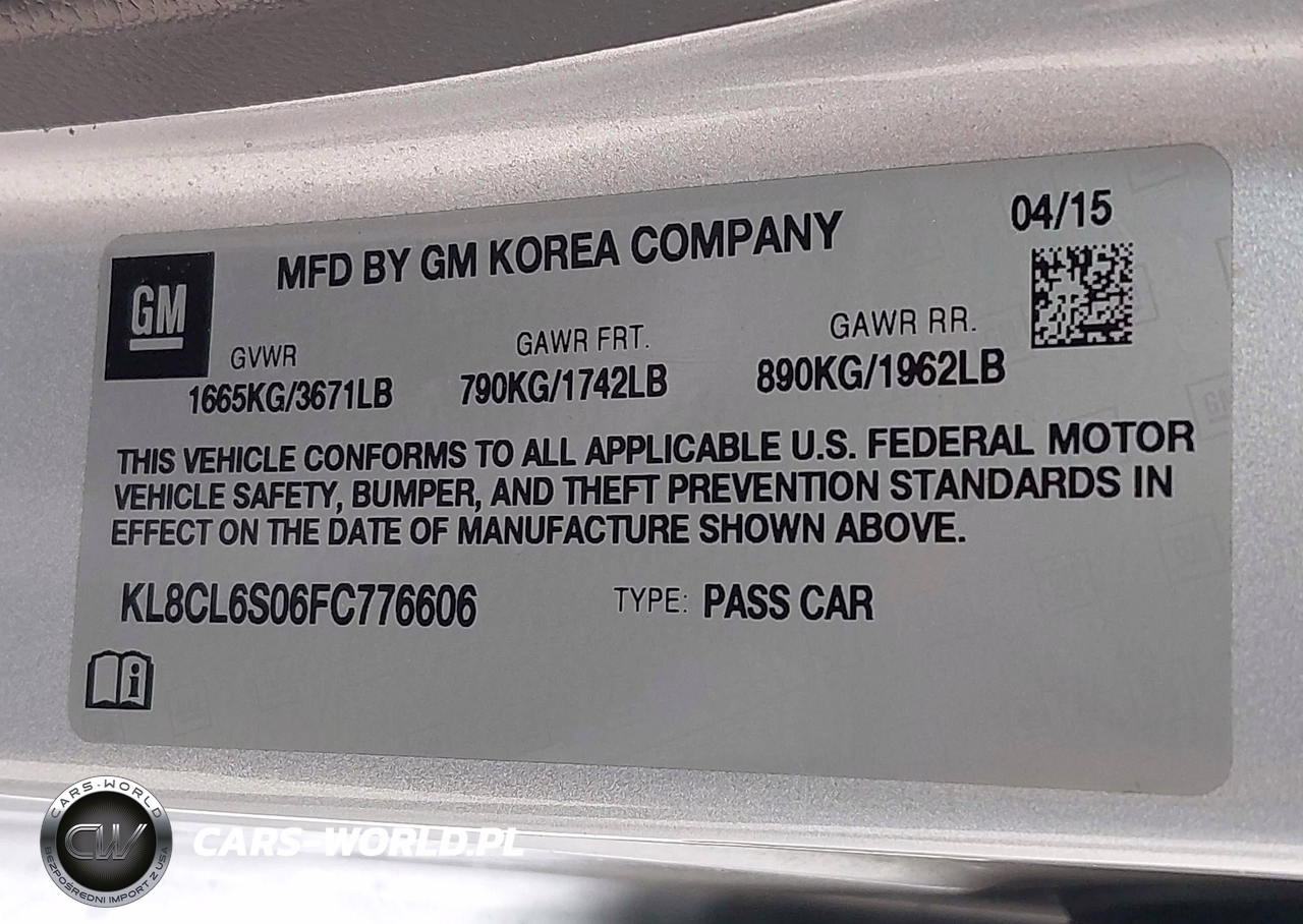 IAAI Nr: I-44801355 VIN: KL8CL6S06FC776606 Port: Los Angeles, CA