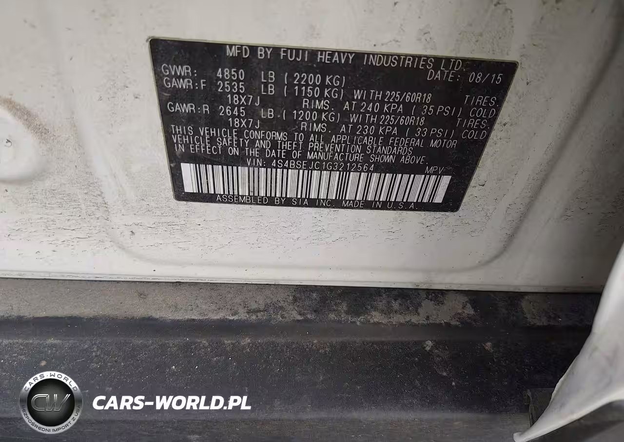 IAAI Nr: I-44801665 VIN: 4S4BSEJC1G3212564 Port: Houston, TX