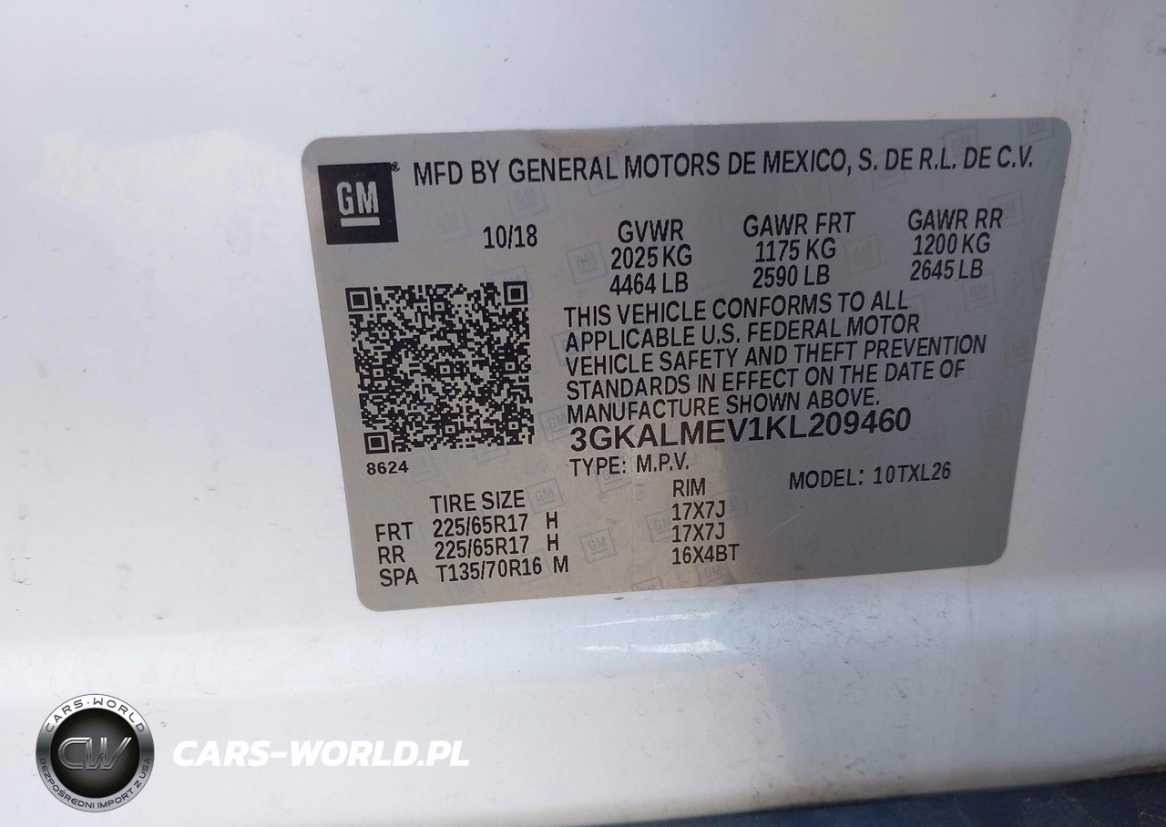 IAAI Nr: I-44802401 VIN: 3GKALMEV1KL209460 Port: Elizabeth, NJ