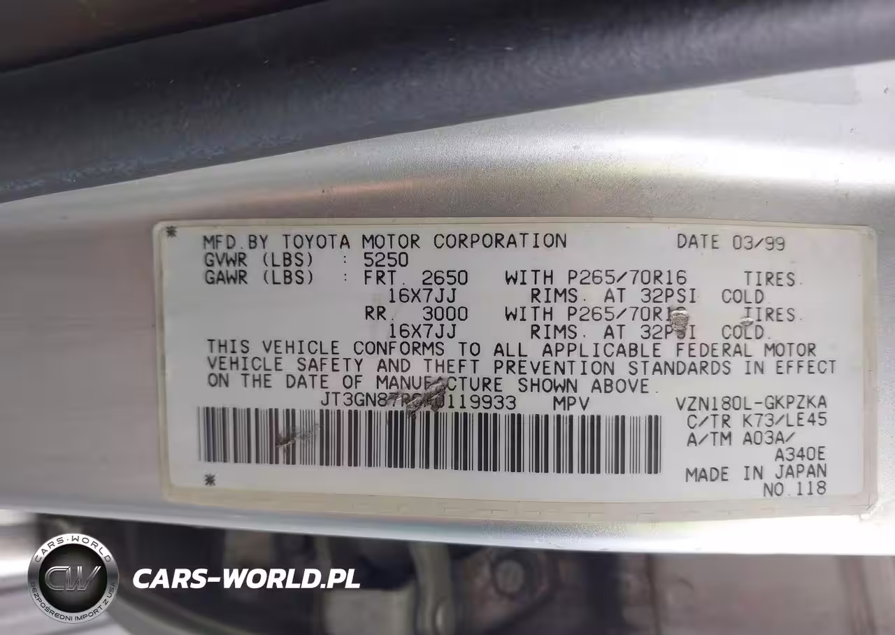 IAAI Nr: I-44802439 VIN: JT3GN87R6X0119933 Port: Los Angeles, CA