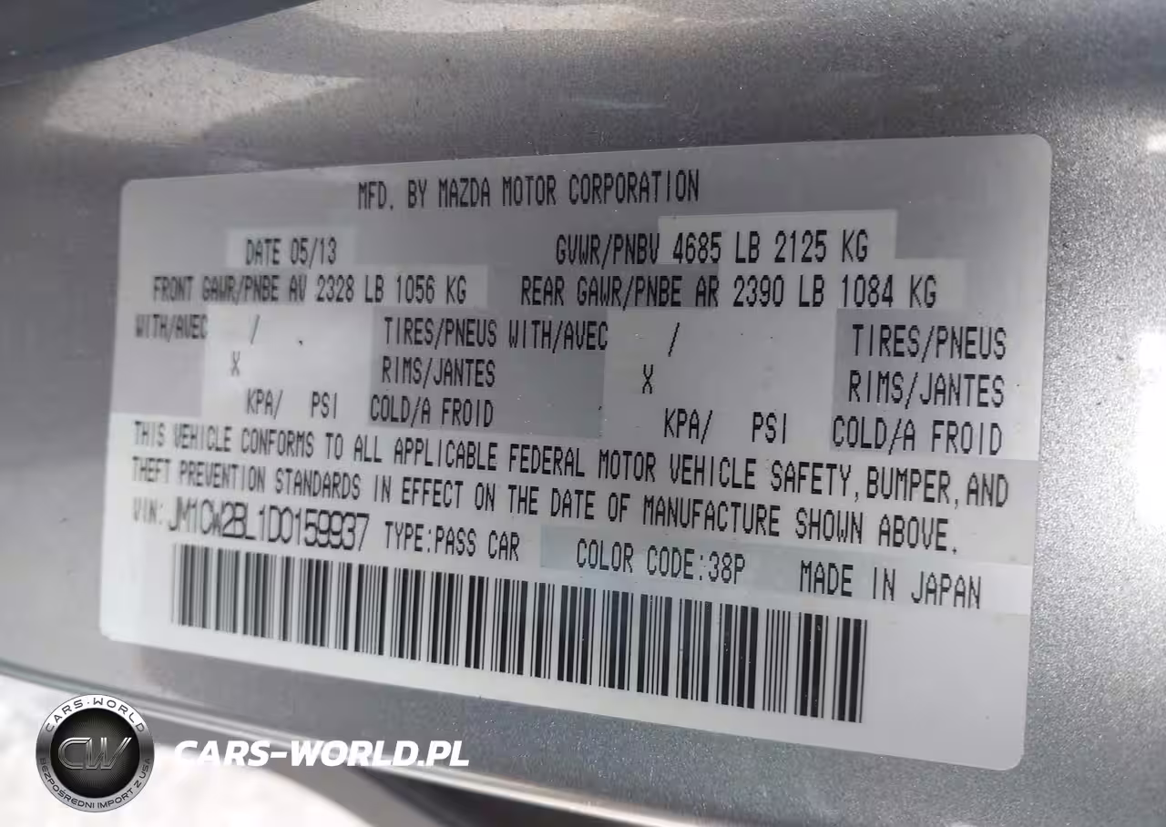 IAAI Nr: I-44802631 VIN: JM1CW2BL1D0159937 Port: Elizabeth, NJ