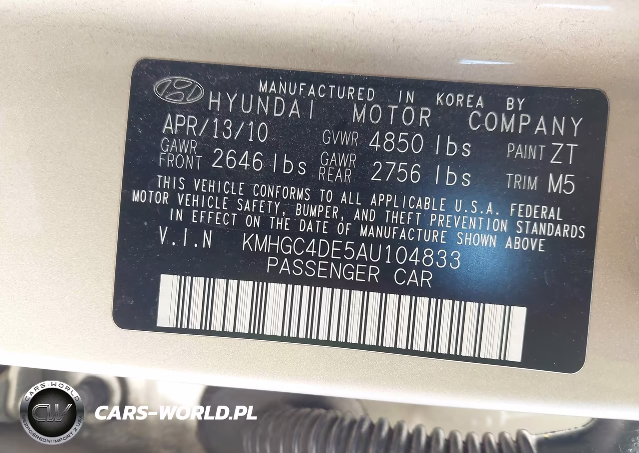 IAAI Nr: I-44803104 VIN: KMHGC4DE5AU104833 Port: Houston, TX