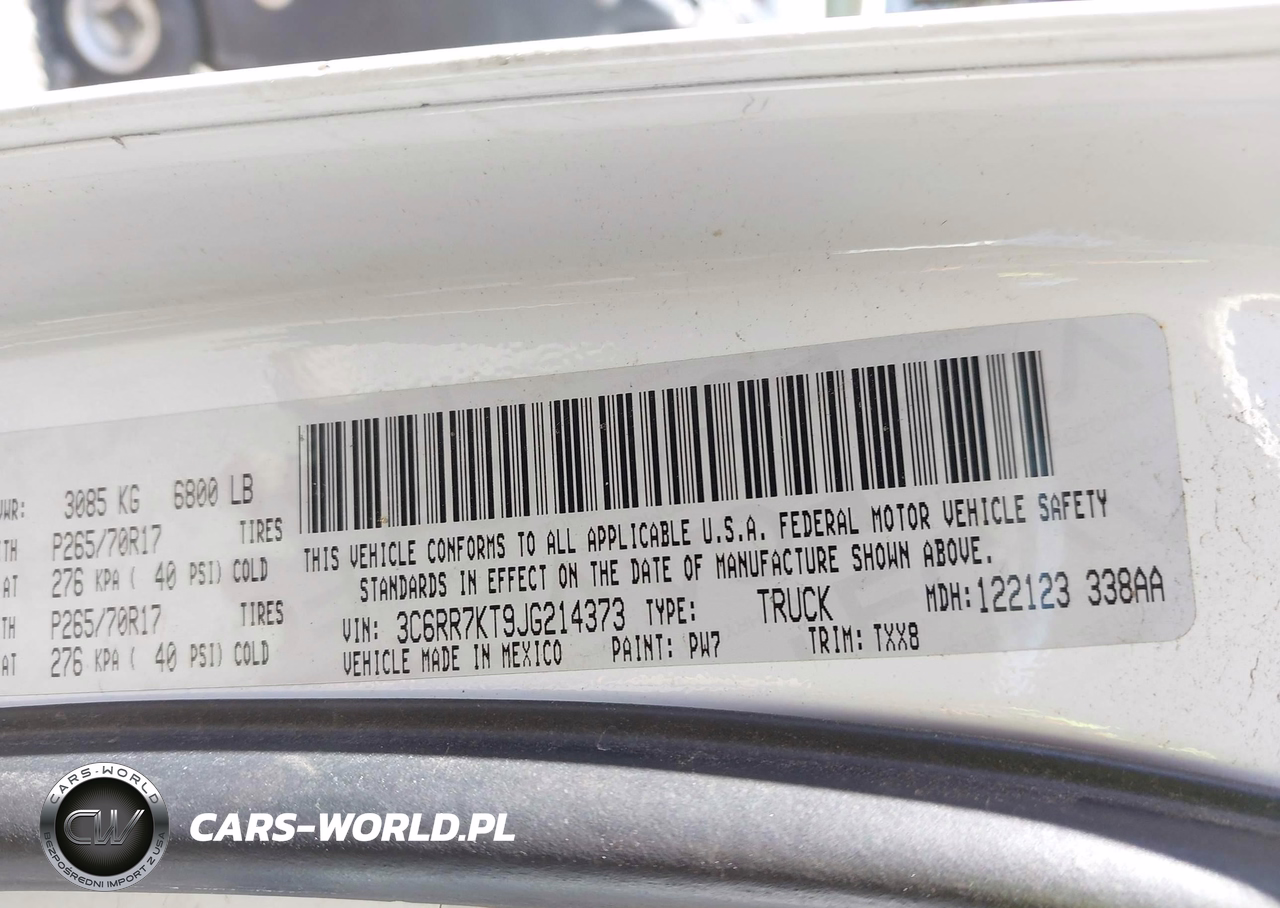 IAAI Nr: I-44803191 VIN: 3C6RR7KT9JG214373 Port: Elizabeth, NJ