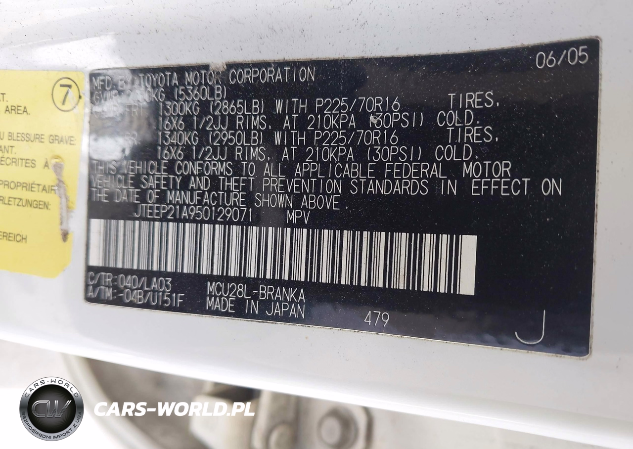 IAAI Nr: I-44803271 VIN: JTEEP21A950129071 Port: Savannah, GA