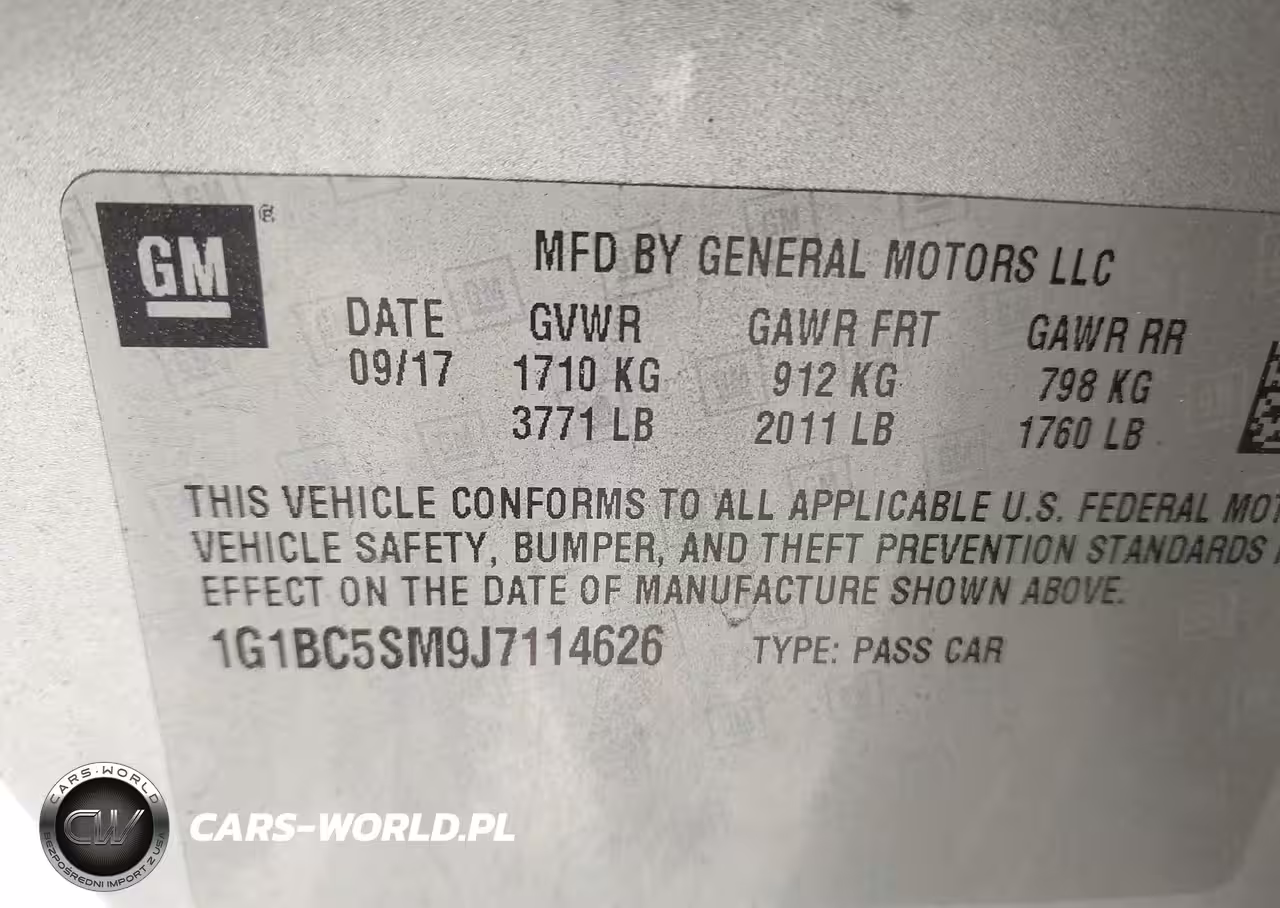 IAAI Nr: I-44803612 VIN: 1G1BC5SM9J7114626 Port: Elizabeth, NJ
