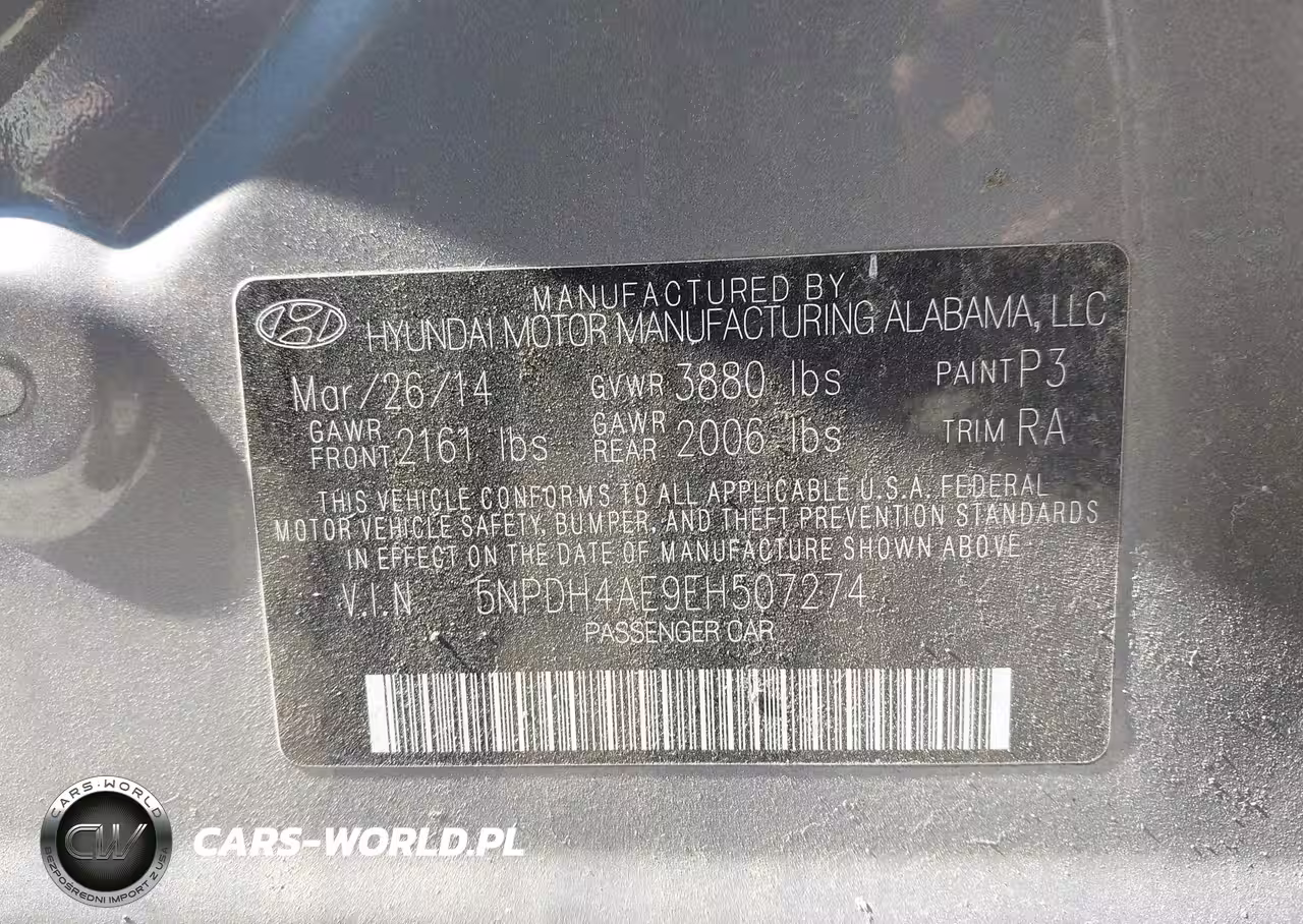 IAAI Nr: I-44804012 VIN: 5NPDH4AE9EH507274 Port: Elizabeth, NJ