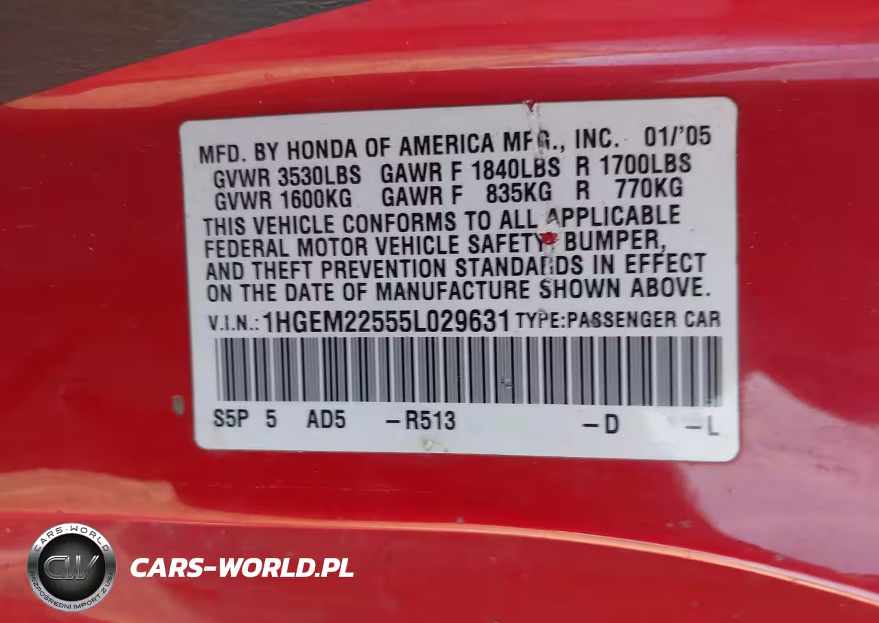 IAAI Nr: I-44804178 VIN: 1HGEM22555L029631 Port: Houston, TX