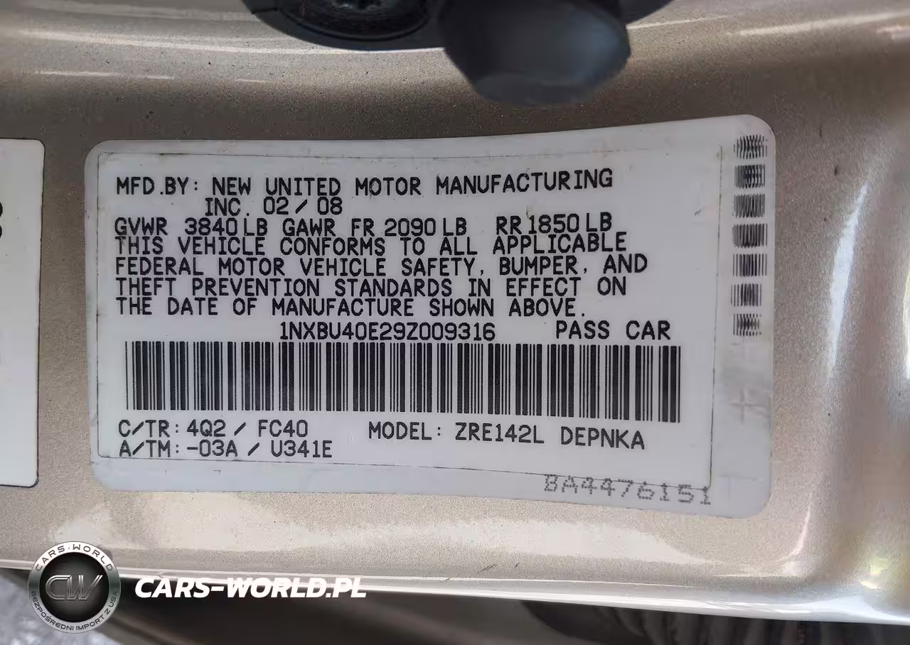 IAAI Nr: I-44804575 VIN: 1NXBU40E29Z009316 Port: Savannah, GA