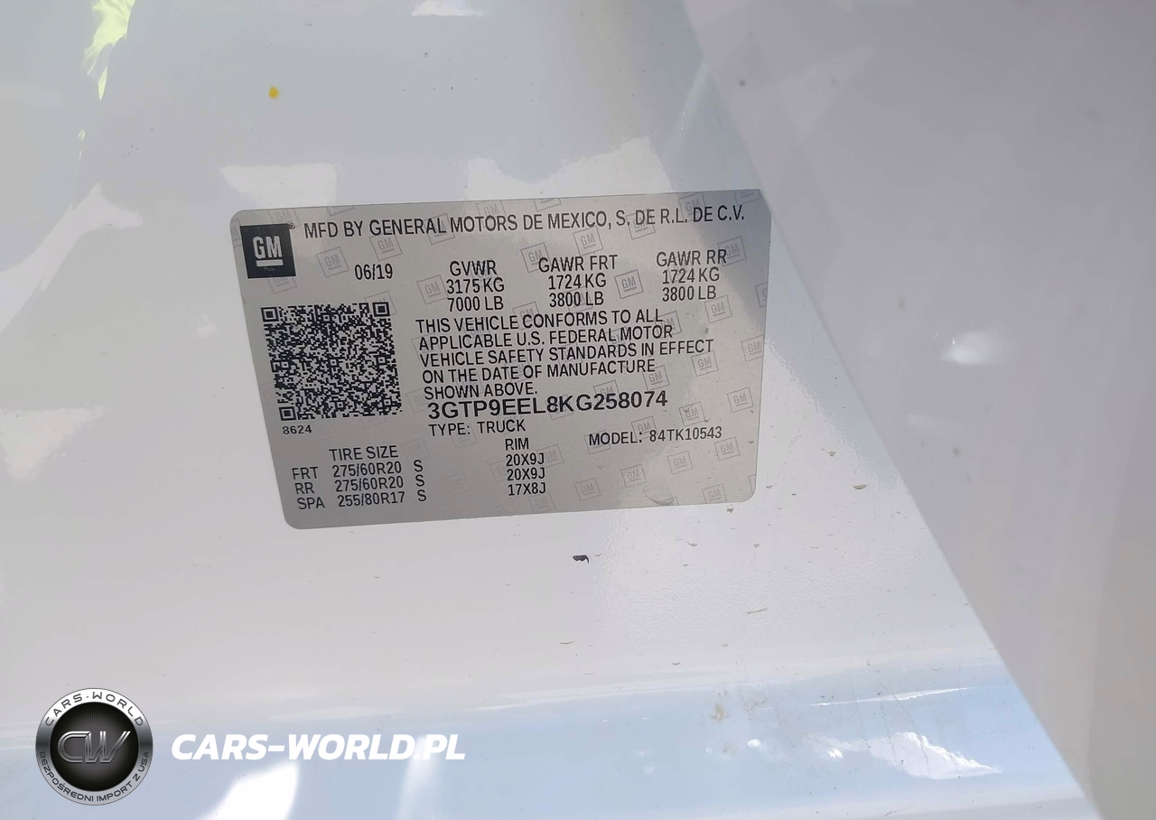 IAAI Nr: I-44805093 VIN: 3GTP9EEL8KG258074 Port: Houston, TX