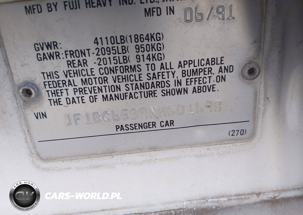IAAI Nr: I-44806086 VIN: JF1BC6537NH601698 Port: Houston, TX