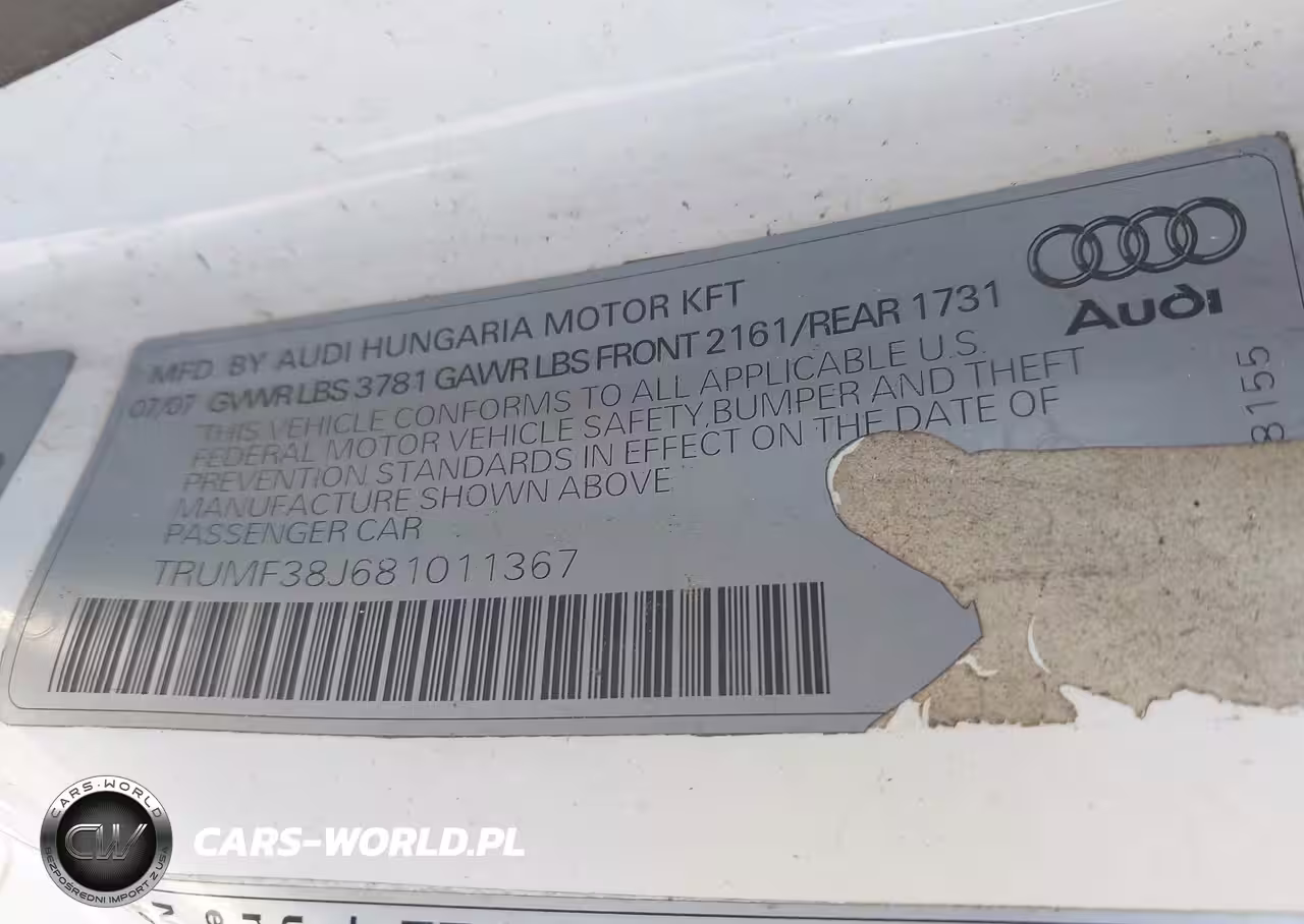 IAAI Nr: I-44806423 VIN: TRUMF38J681011367 Port: Elizabeth, NJ