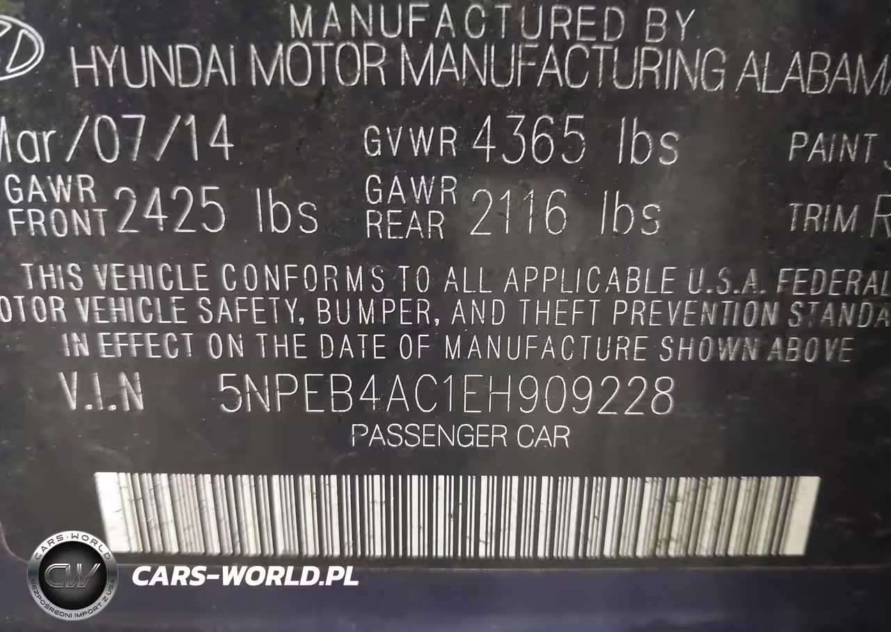 IAAI Nr: I-44807128 VIN: 5NPEB4AC1EH909228 Port: Elizabeth, NJ