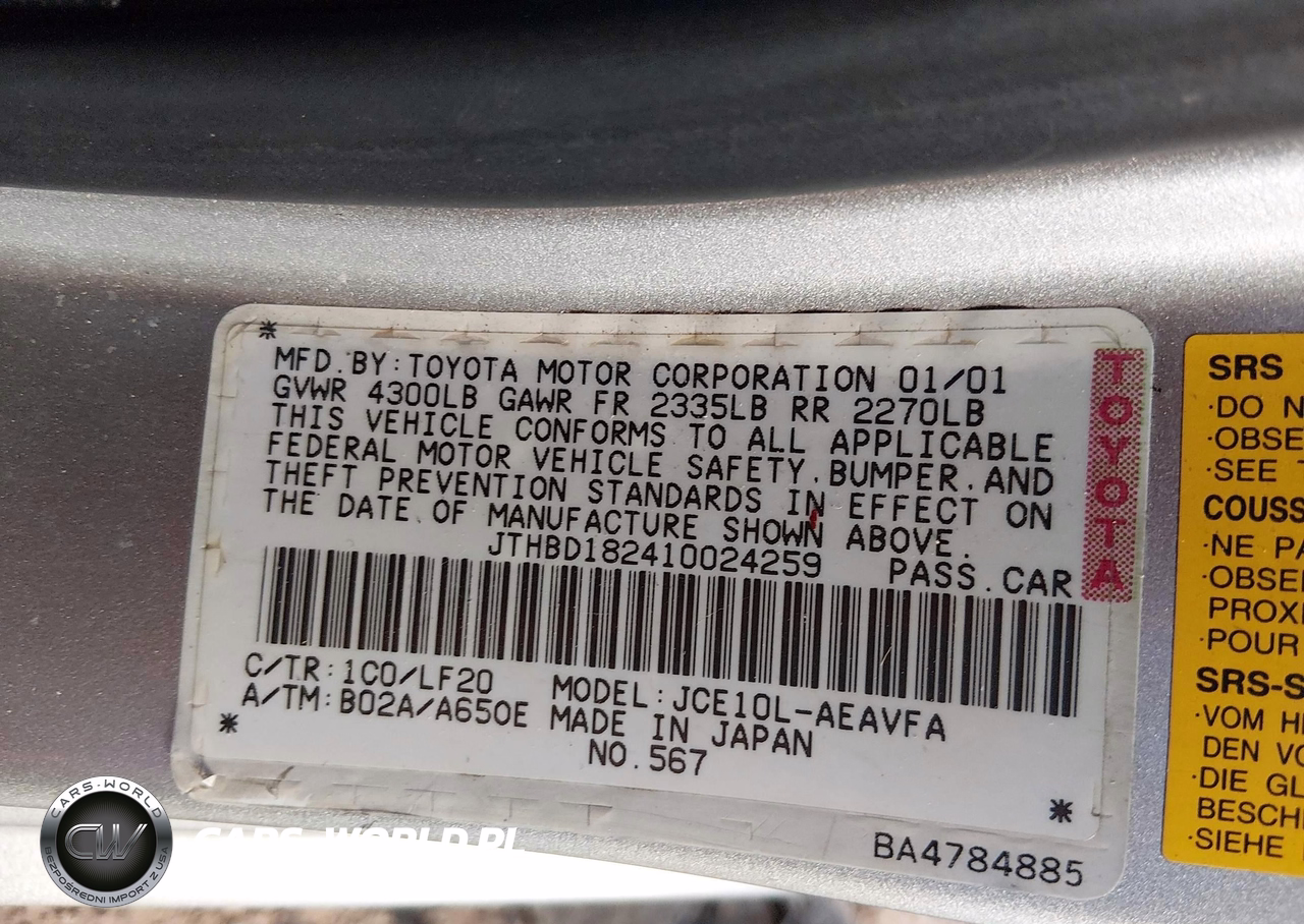IAAI Nr: I-44807385 VIN: JTHBD182410024259 Port: Los Angeles, CA