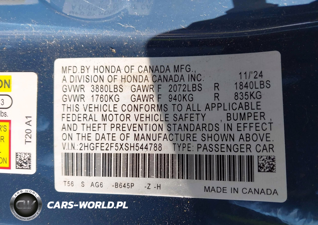 IAAI Nr: I-44807838 VIN: 2HGFE2F5XSH544788 Port: Elizabeth, NJ
