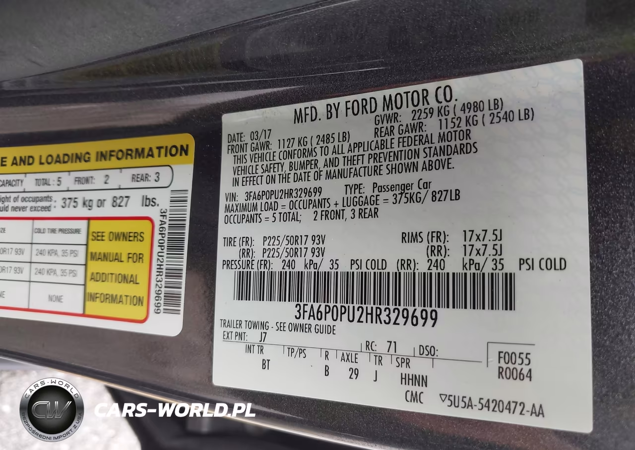 IAAI Nr: I-44808603 VIN: 3FA6P0PU2HR329699 Port: Los Angeles, CA