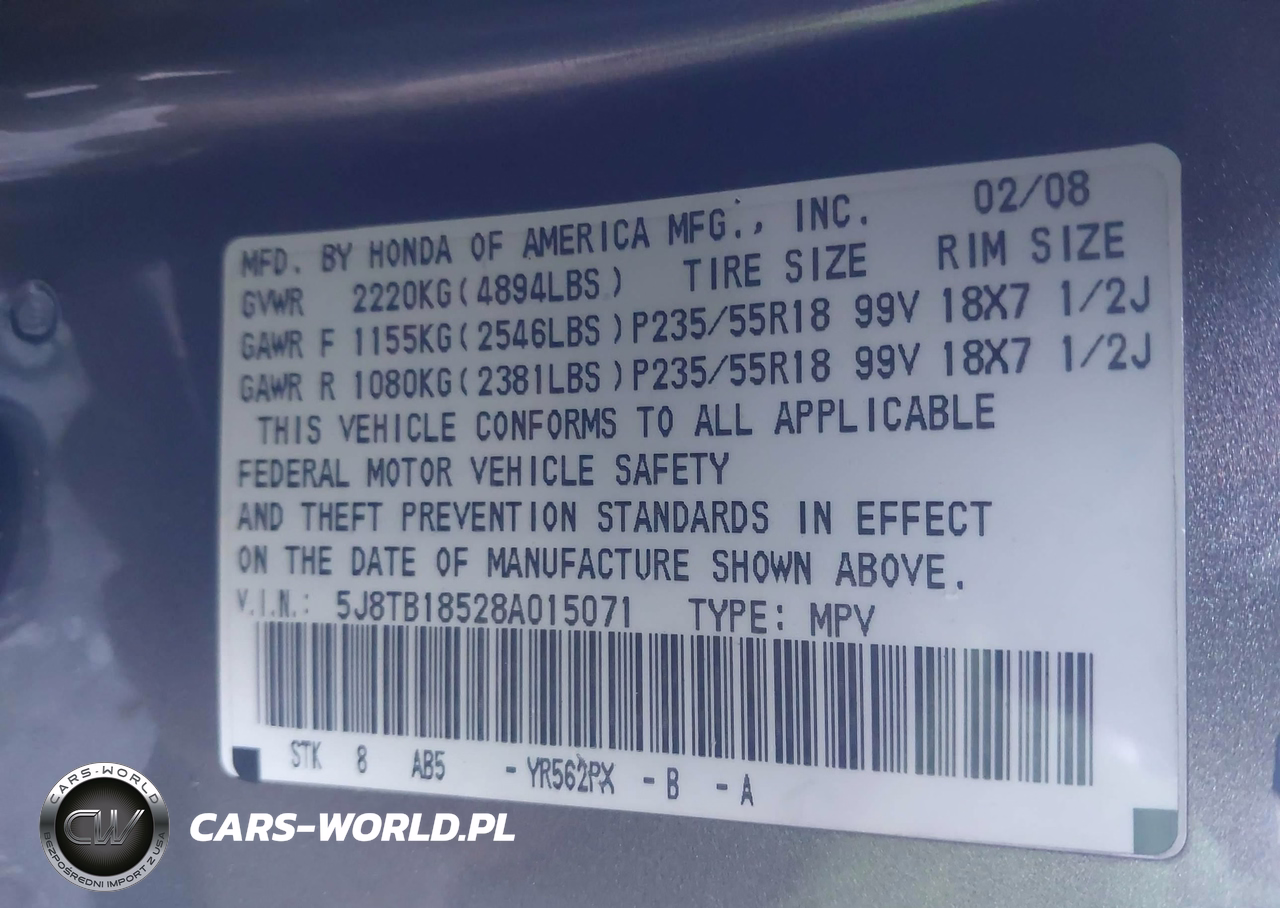 IAAI Nr: I-44808750 VIN: 5J8TB18528A015071 Port: Elizabeth, NJ