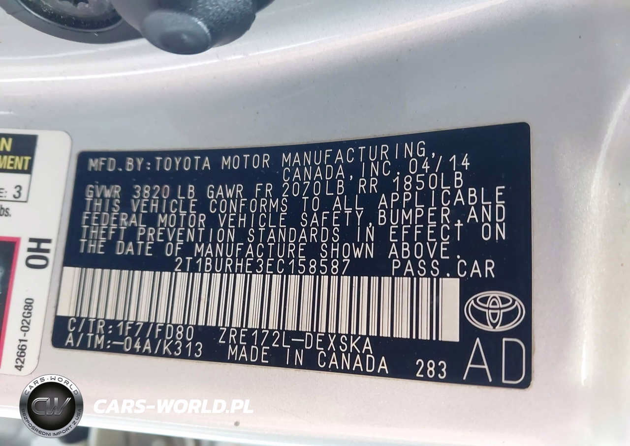 IAAI Nr: I-44809056 VIN: 2T1BURHE3EC158587 Port: Savannah, GA