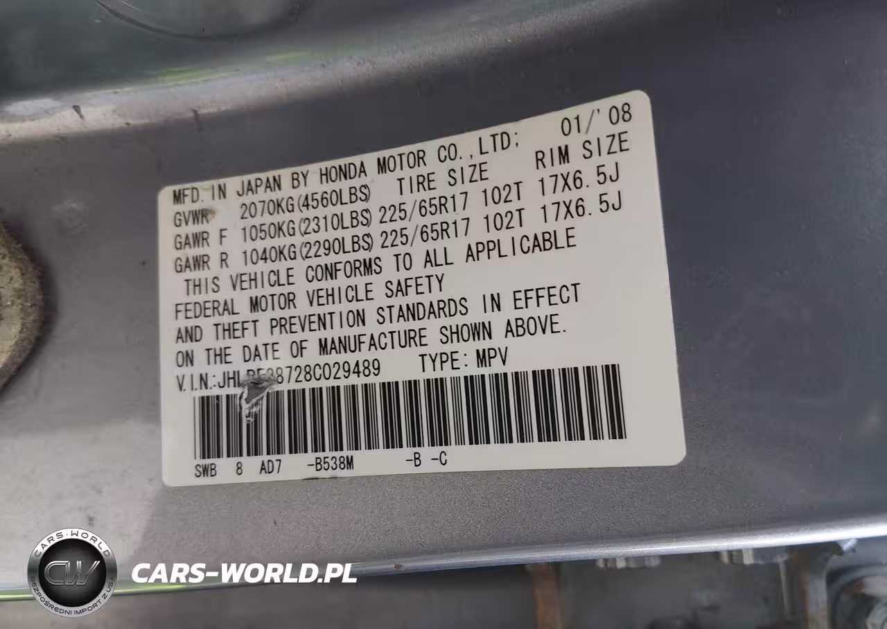 IAAI Nr: I-44809379 VIN: JHLRE38728C029489 Port: Elizabeth, NJ