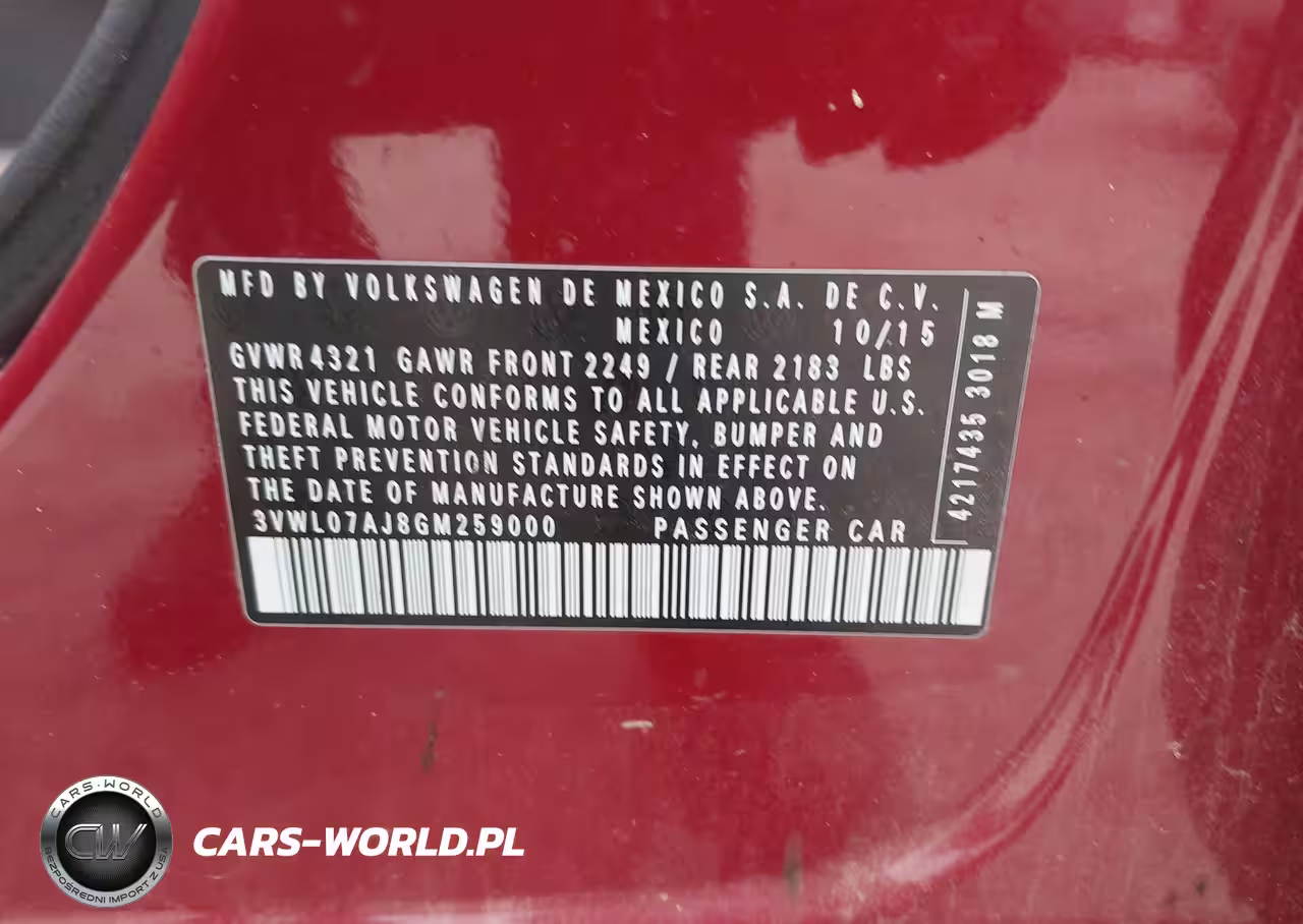 IAAI Nr: I-44809874 VIN: 3VWL07AJ8GM259000 Port: Houston, TX