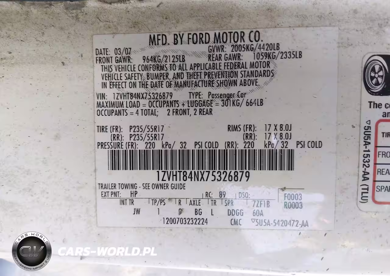 IAAI Nr: I-44809976 VIN: 1ZVHT84NX75326879 Port: Elizabeth, NJ