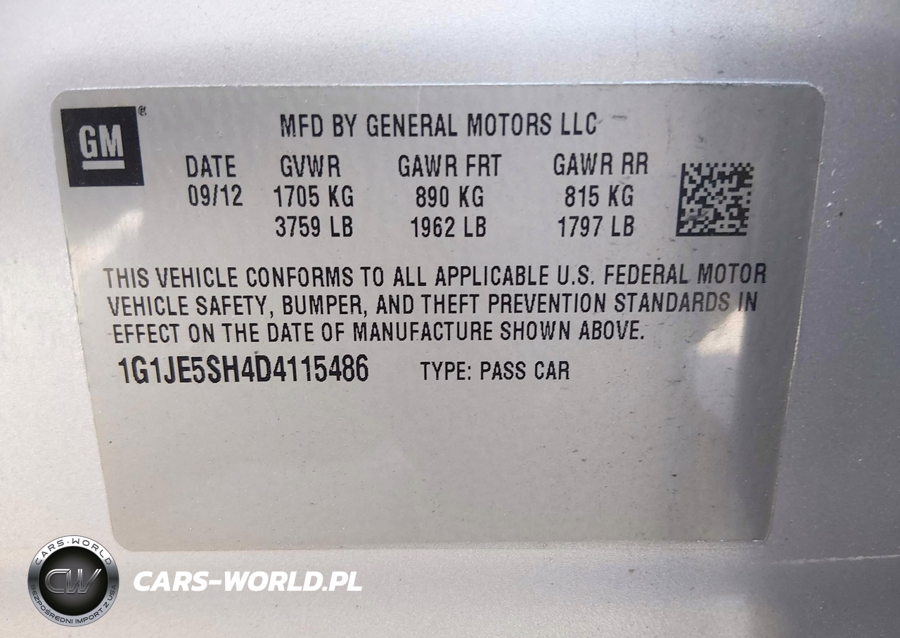 IAAI Nr: I-44810010 VIN: 1G1JE5SH4D4115486 Port: Elizabeth, NJ