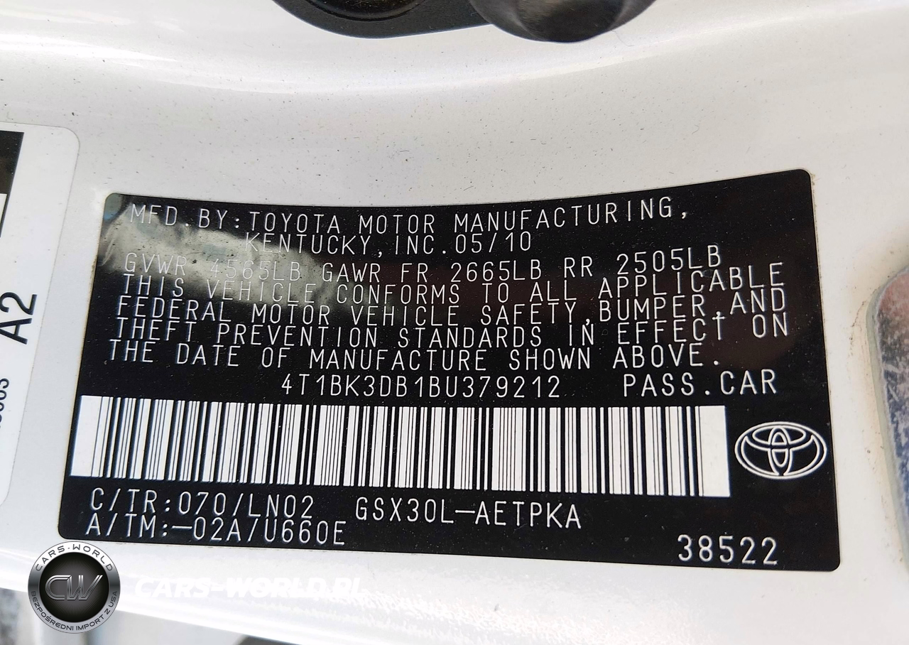IAAI Nr: I-44810414 VIN: 4T1BK3DB1BU379212 Port: Indianapolis, IN