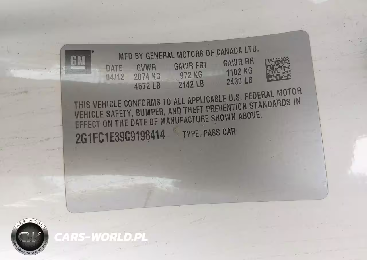 IAAI Nr: I-44810750 VIN: 2G1FC1E39C9198414 Port: Los Angeles, CA
