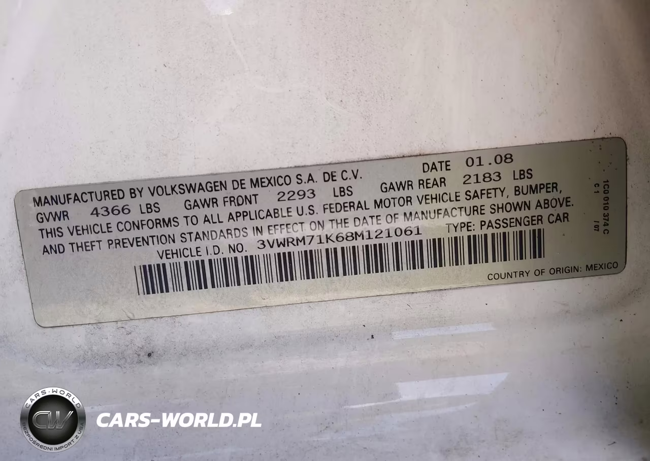 IAAI Nr: I-44810817 VIN: 3VWRM71K68M121061 Port: Elizabeth, NJ