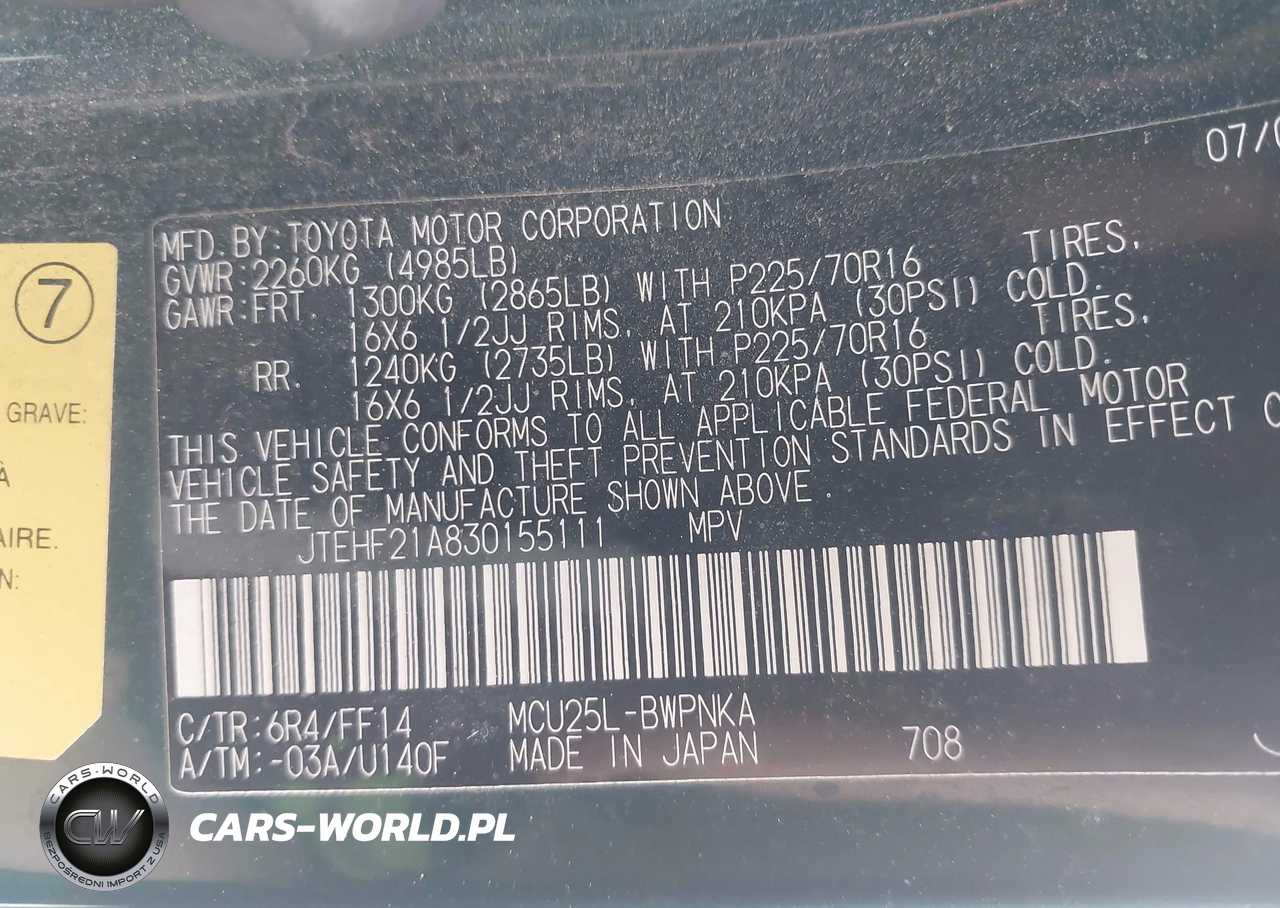 IAAI Nr: I-44811250 VIN: JTEHF21A830155111 Port: Los Angeles, CA