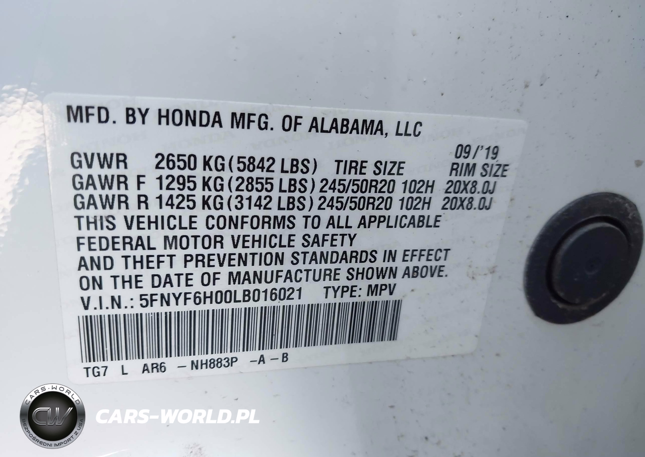 IAAI Nr: I-44812830 VIN: 5FNYF6H00LB016021 Port: Los Angeles, CA