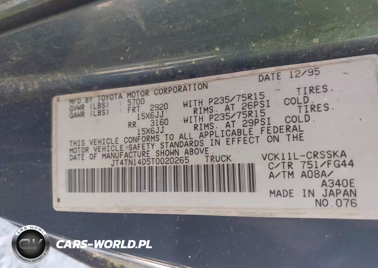 IAAI Nr: I-44813530 VIN: JT4TN14D5T0020265 Port: Los Angeles, CA