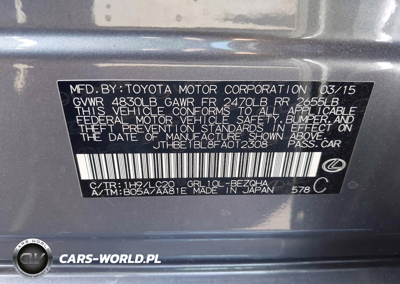 IAAI Nr: I-44813586 VIN: JTHBE1BL8FA012308 Port: Los Angeles, CA