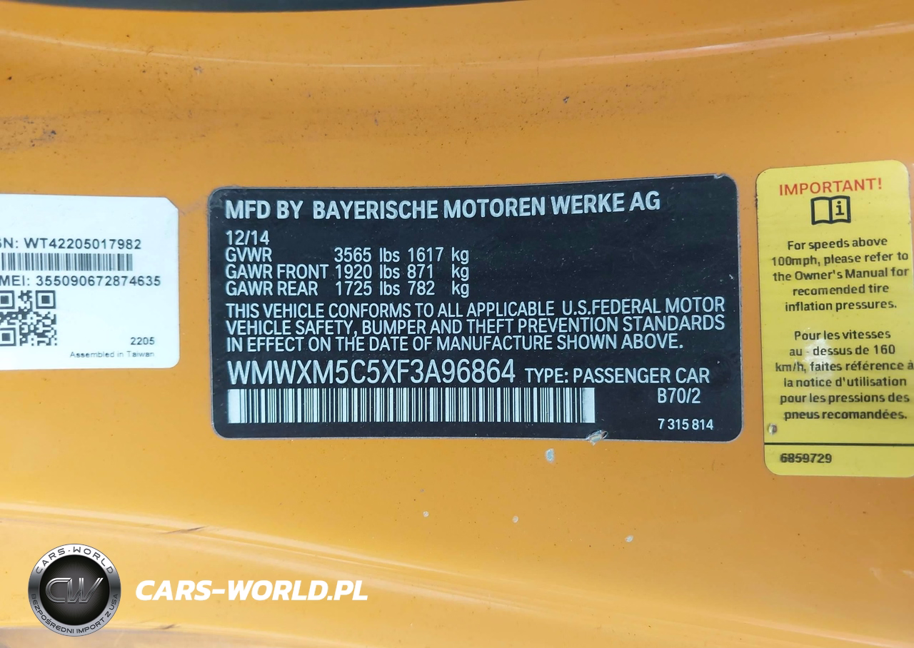 IAAI Nr: I-44813921 VIN: WMWXM5C5XF3A96864 Port: Los Angeles, CA