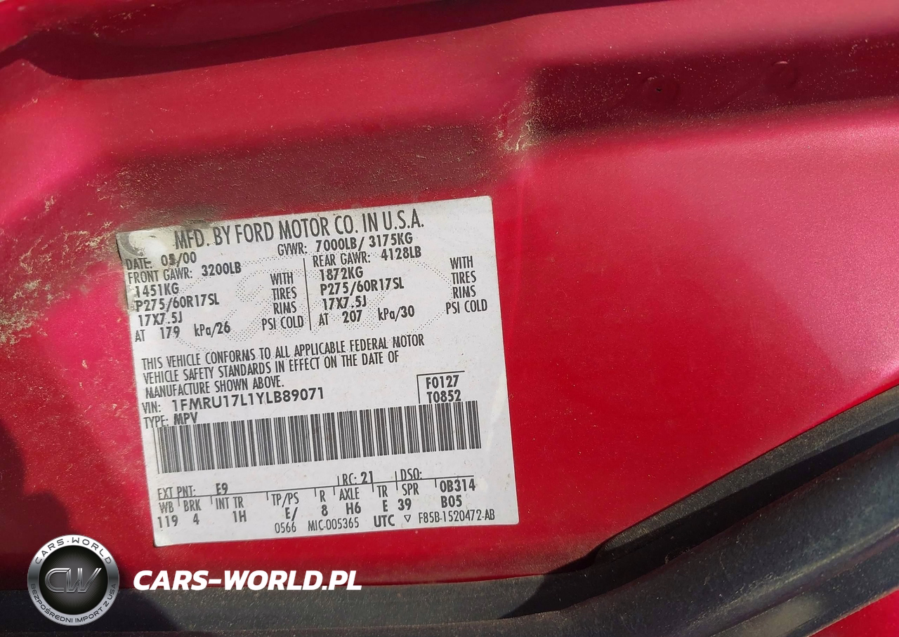 IAAI Nr: I-44814068 VIN: 1FMRU17L1YLB89071 Port: Savannah, GA