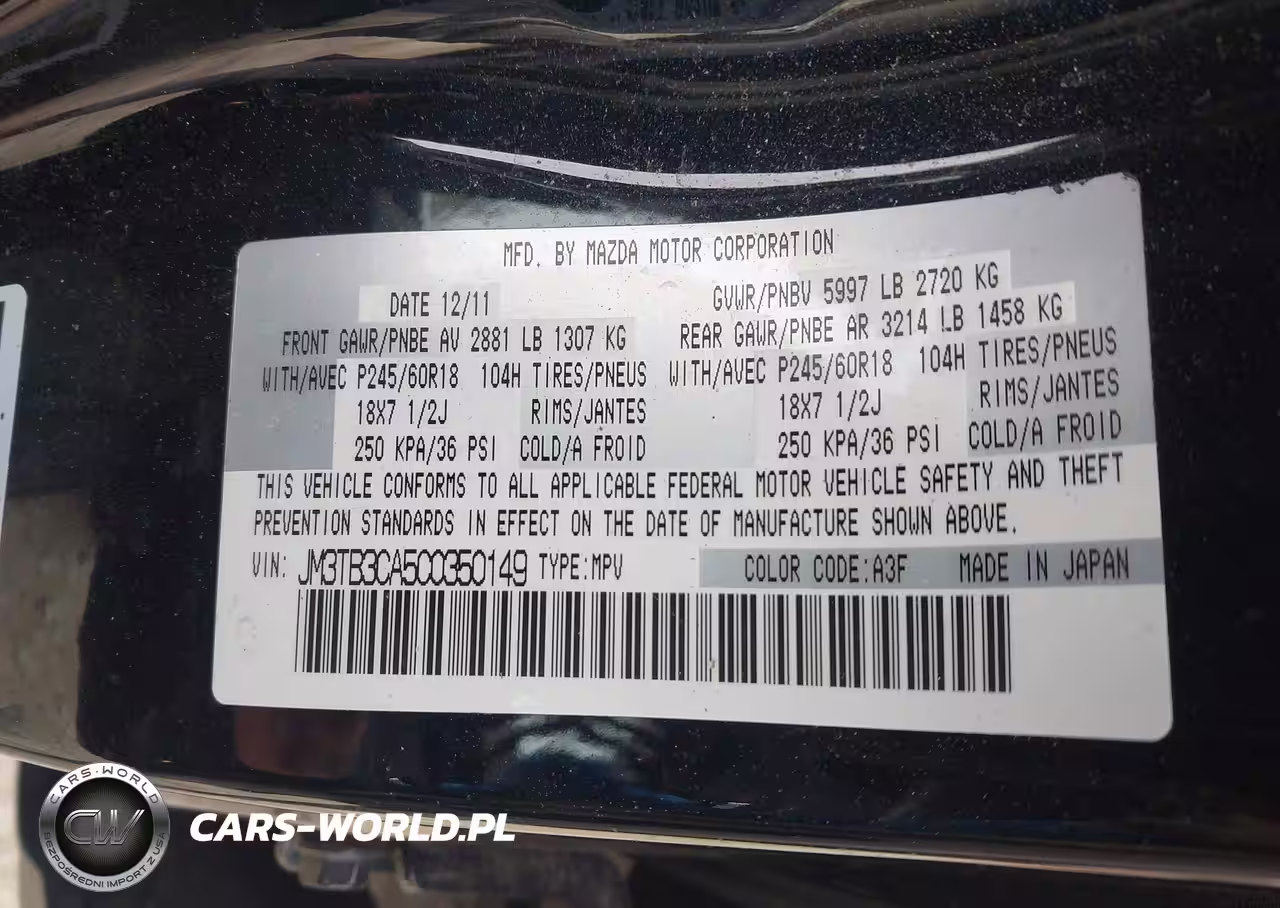 IAAI Nr: I-44814372 VIN: JM3TB3CA5C0350149 Port: Indianapolis, IN