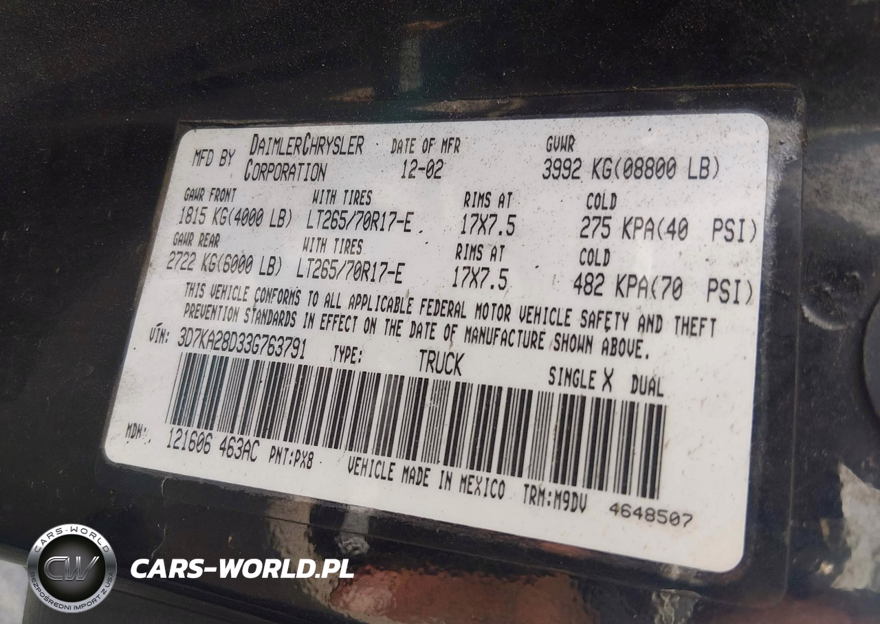 IAAI Nr: I-44814553 VIN: 3D7KA28D33G763791 Port: Houston, TX