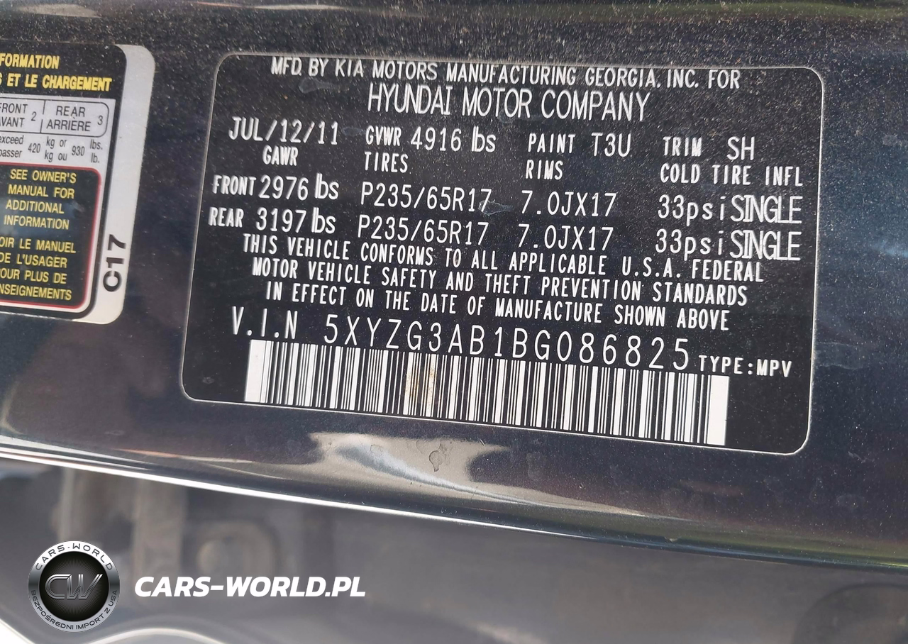 IAAI Nr: I-44814634 VIN: 5XYZG3AB1BG086825 Port: Houston, TX