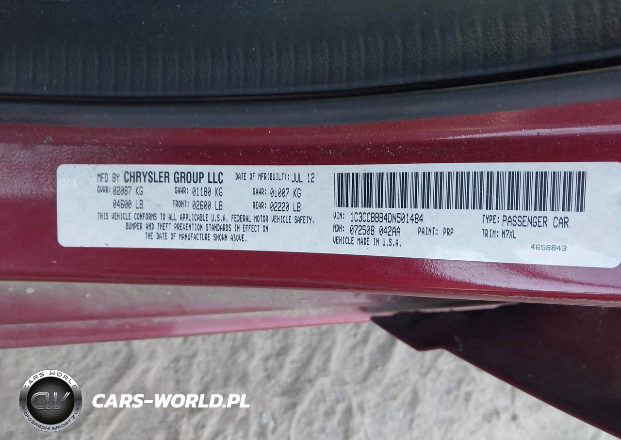 IAAI Nr: I-44814792 VIN: 1C3CCBBB4DN501484 Port: Savannah, GA