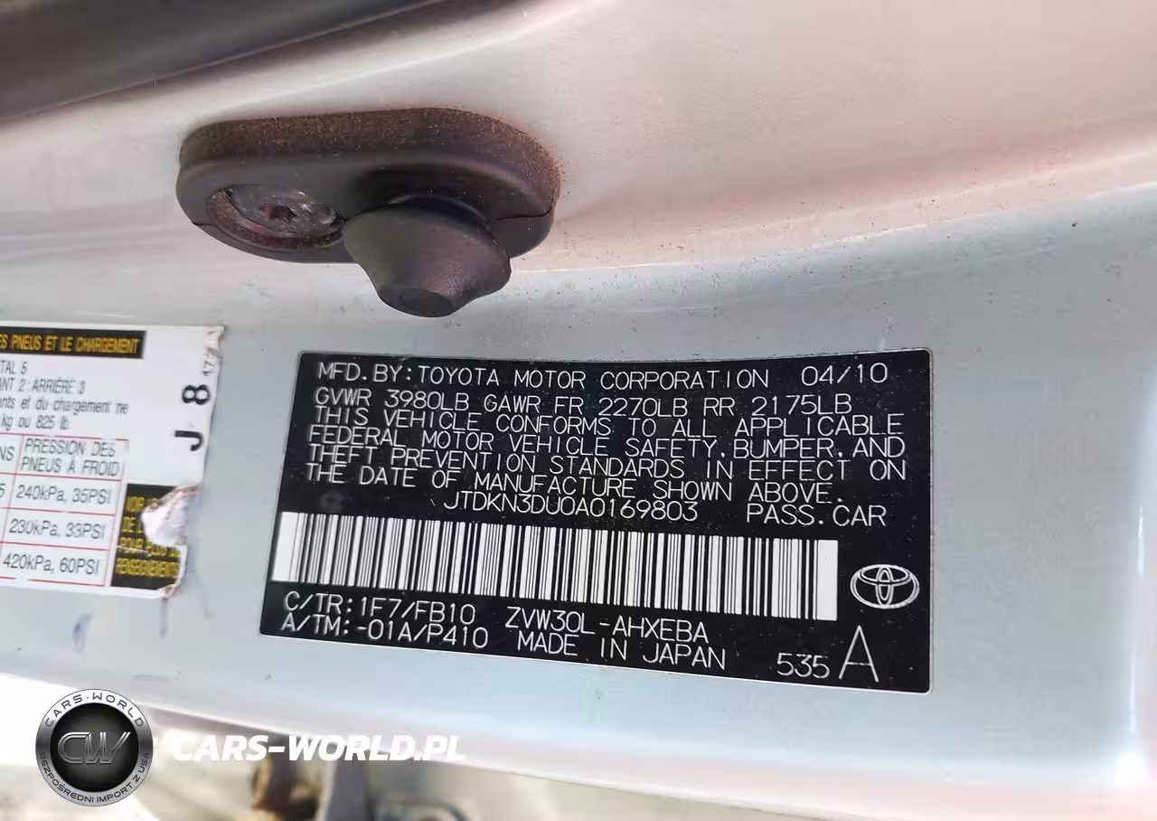 IAAI Nr: I-44815094 VIN: JTDKN3DU0A0169803 Port: Elizabeth, NJ