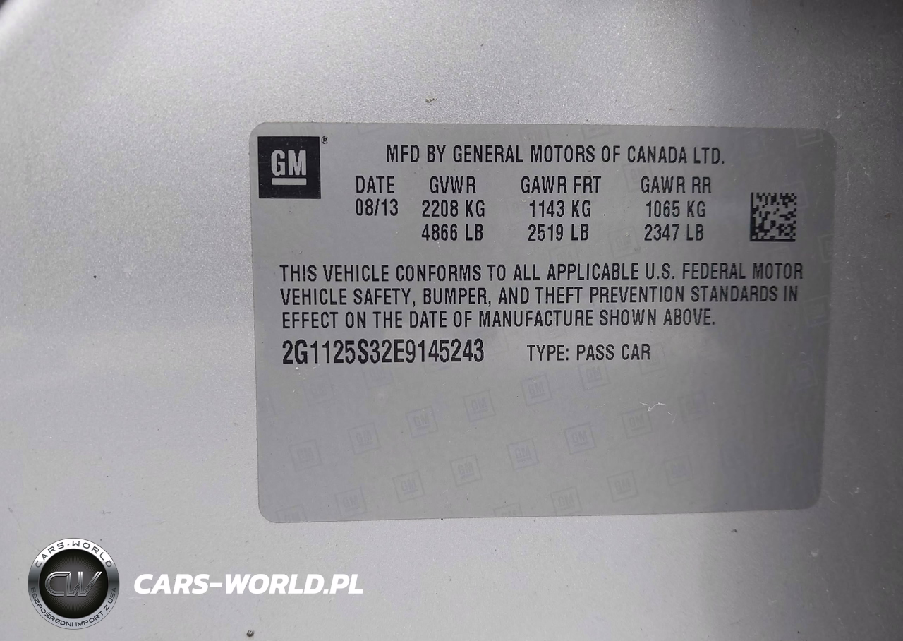 IAAI Nr: I-44815571 VIN: 2G1125S32E9145243 Port: Indianapolis, IN
