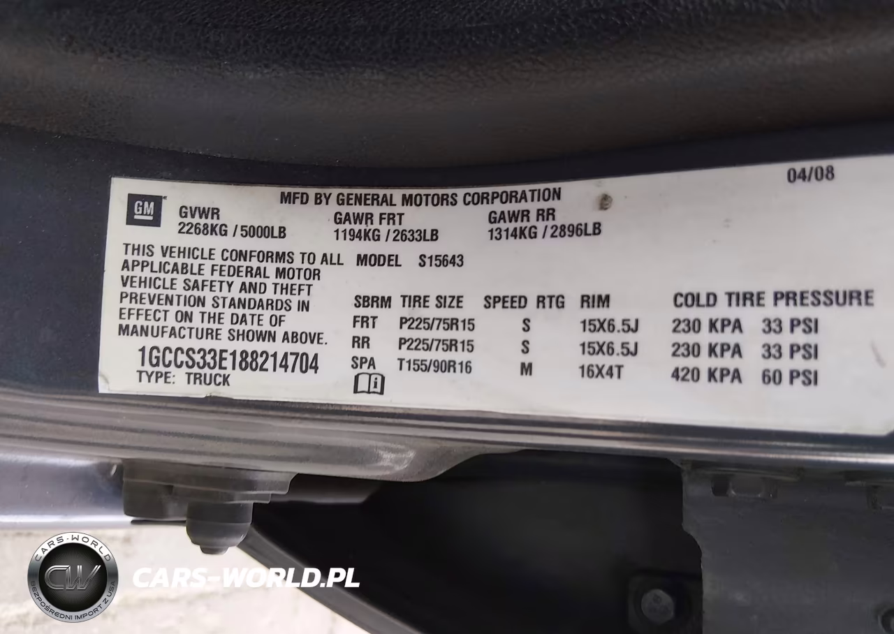 IAAI Nr: I-44816033 VIN: 1GCCS33E188214704 Port: Savannah, GA